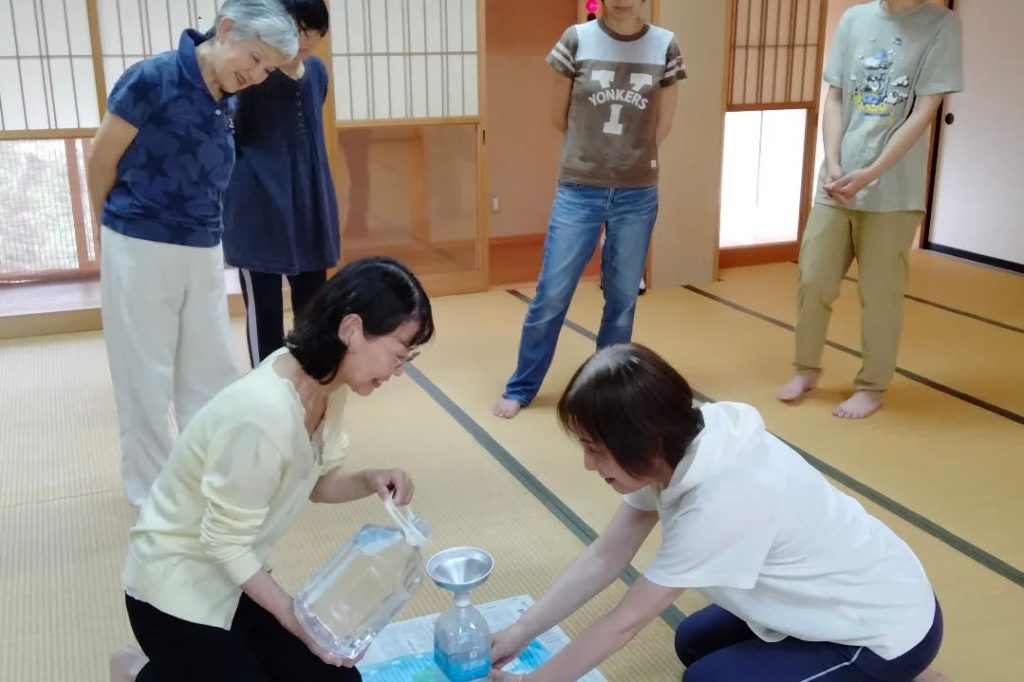 注ぐというのは、でたらめにやっても上手くいきません。今日は皆さんに実際に水を注いでもらいました。